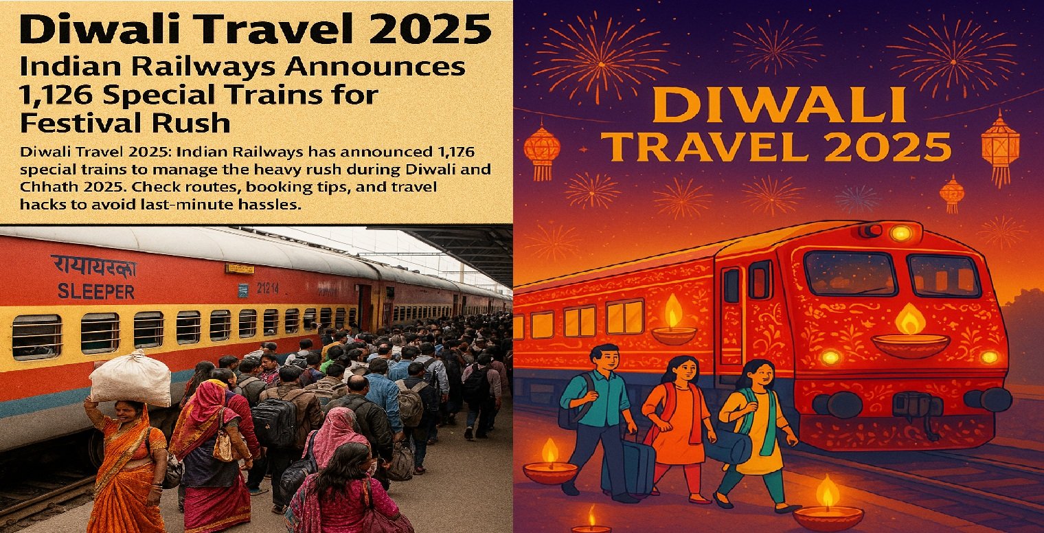 Diwali Travel 2025: Indian Railways has announced 1,126 special trains to manage the heavy rush during Diwali and Chhath 2025. Check routes, booking tips, and travel hacks to avoid last-minute hassles.