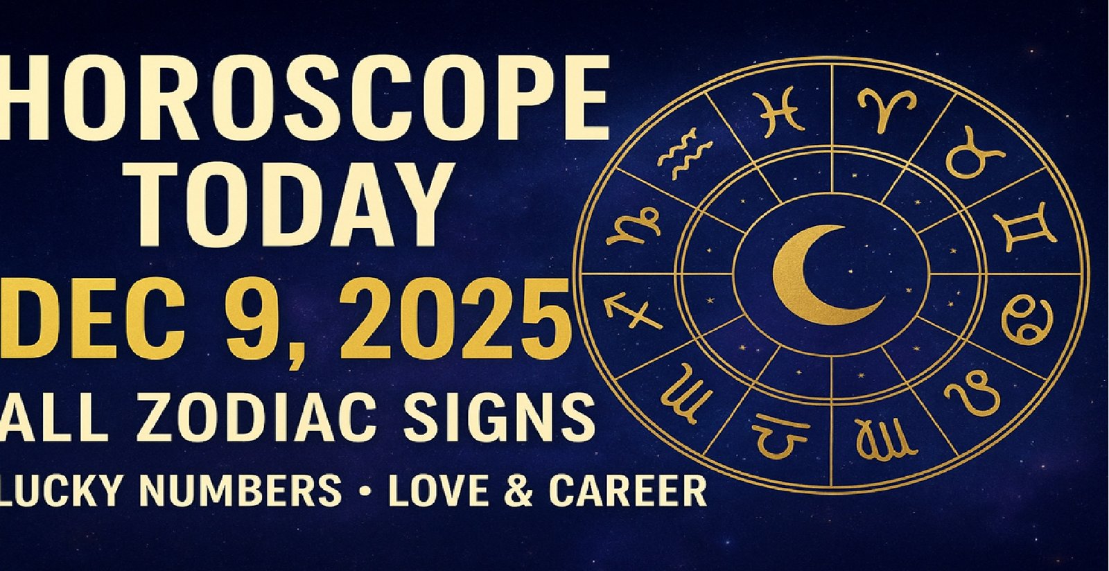 Horoscope Today – December 9, 2025: Discover what the stars predict for your zodiac sign. Explore detailed astrology insights, love, career, health forecast, lucky numbers, colours, and affirmations for all signs. Read your daily horoscope to attract positivity and success!