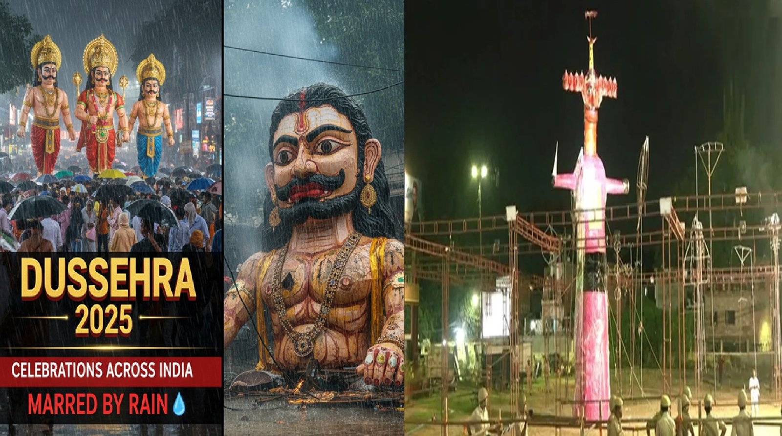 Dussehra 2025: Celebrations Across India Marred by Rain; JNU Witnesses Chaos, Kota Burns World’s Tallest Effigy