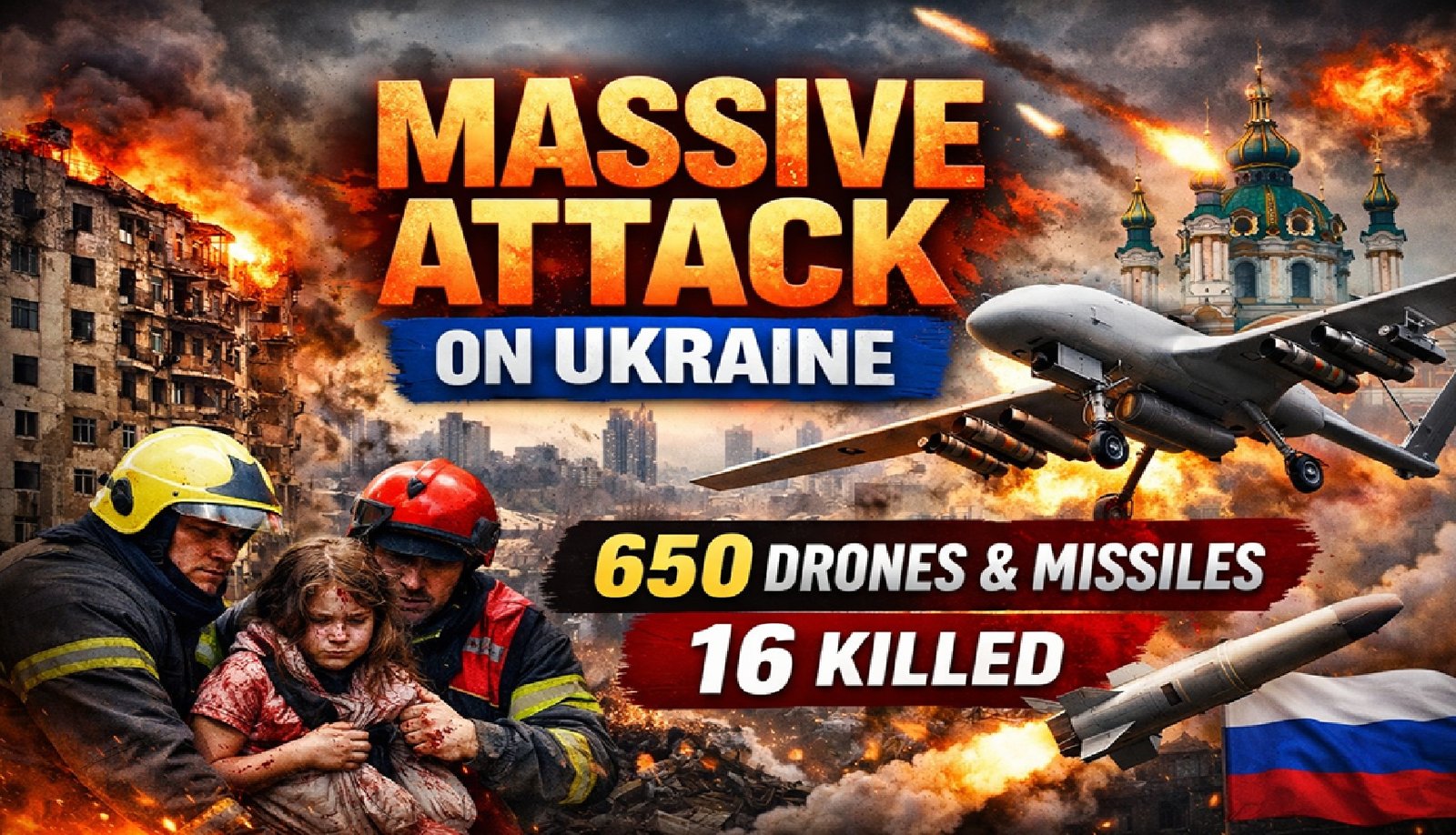 Russia Unleashes Deadliest Strike of 2026 on Ukraine: 650 Drones and Missiles Hit Kyiv, 16 Killed Russia Unleashes Deadliest Strike…